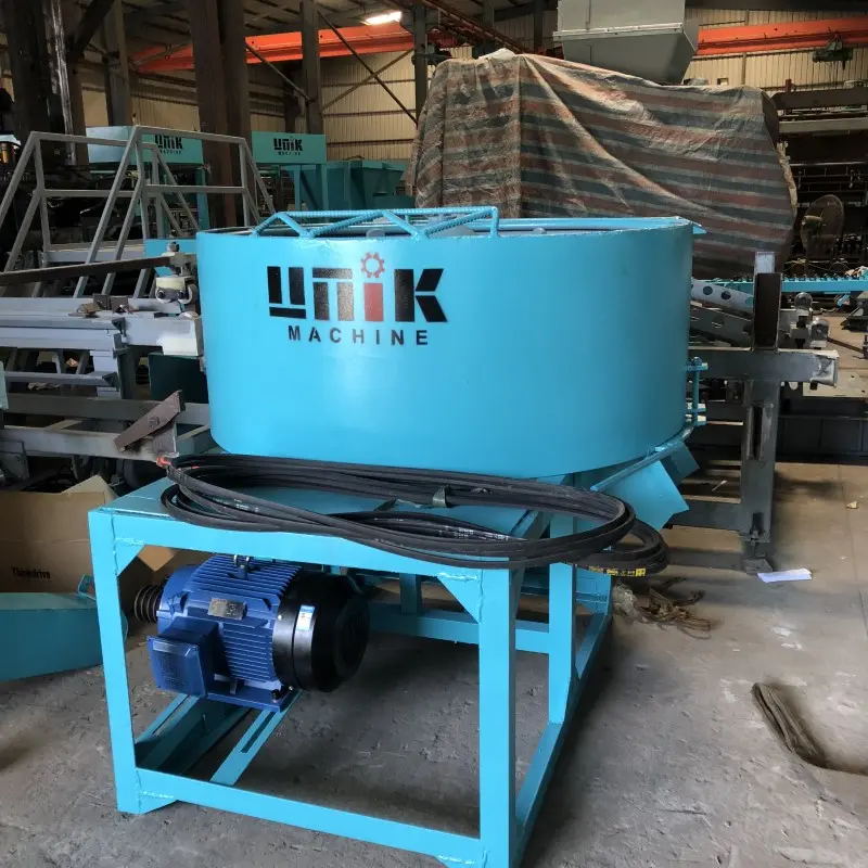 Concrete pan mixer is mainly composed of mixing drum, feeding and discharging mechanism, water supply system, motor, transmission mechanism, rack and supporting device etc. It has the advantages of stable operation, low energy consumption, compact structure, reliable transmission, light weight, considering some customers have limited investment and small working space at beginning, this can be used for various material like harsh concrete, light weight aggregate, plastic concrete and also concrete fly ash blocks.
